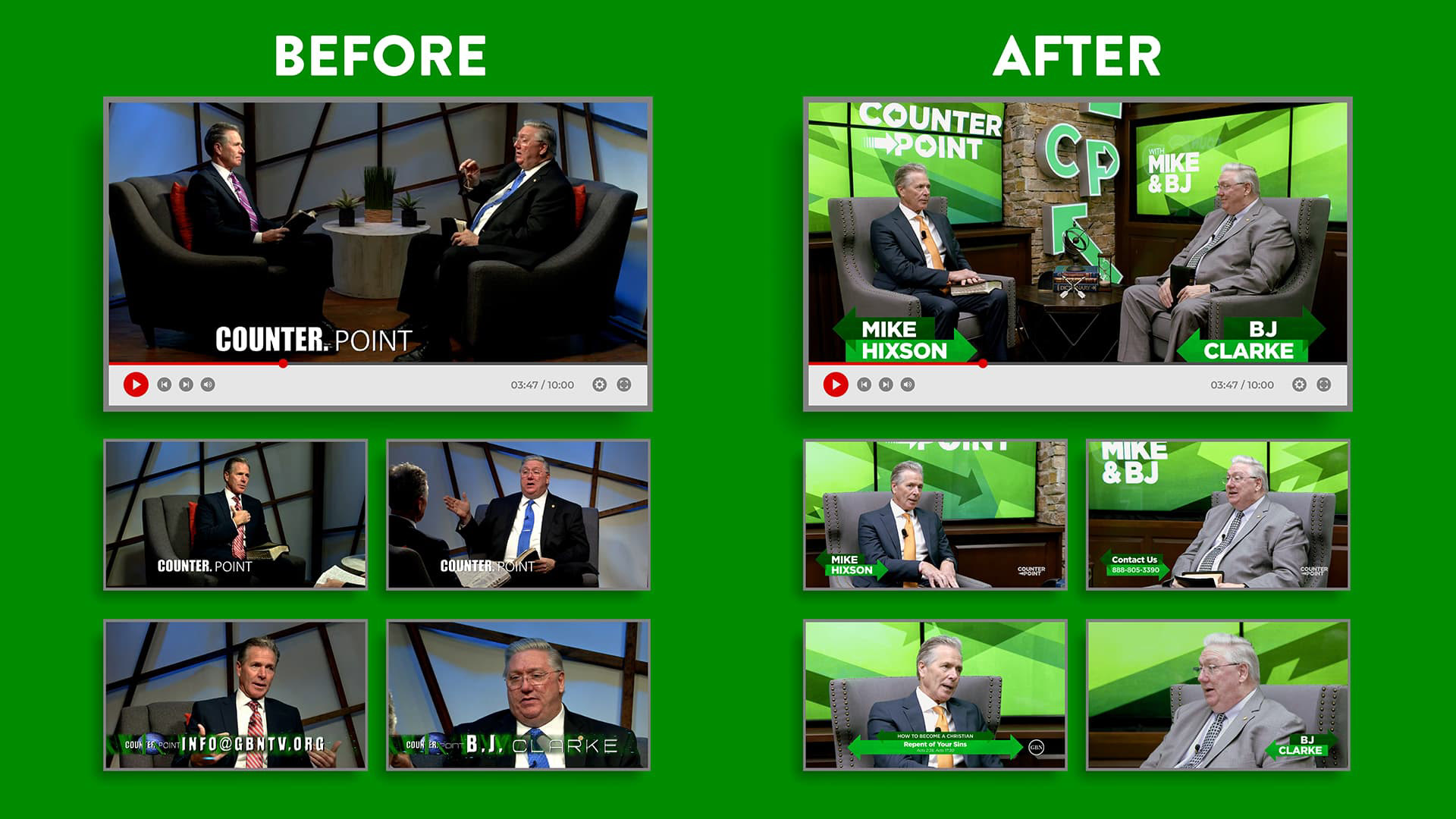 Refreshing a decade-old talk show started out as a simple visual refresh and ended up turning into a massive overhaul that included everything from the title design and animated lower-thirds to completely rearranging the light rig, rebuilding the set to include new LED screens, and even having a custom LED logo sign made by a local sign shop. After a grueling six months, the payoff was beautiful and well worth the blood, sweat, and other bodily fluids. The launch of the new season included a month of promo videos and paid posts on social media and YouTube leading up to the release. Everything you can think of, from YouTube thumbnails to business cards, were rebranded in preparation for the launch.