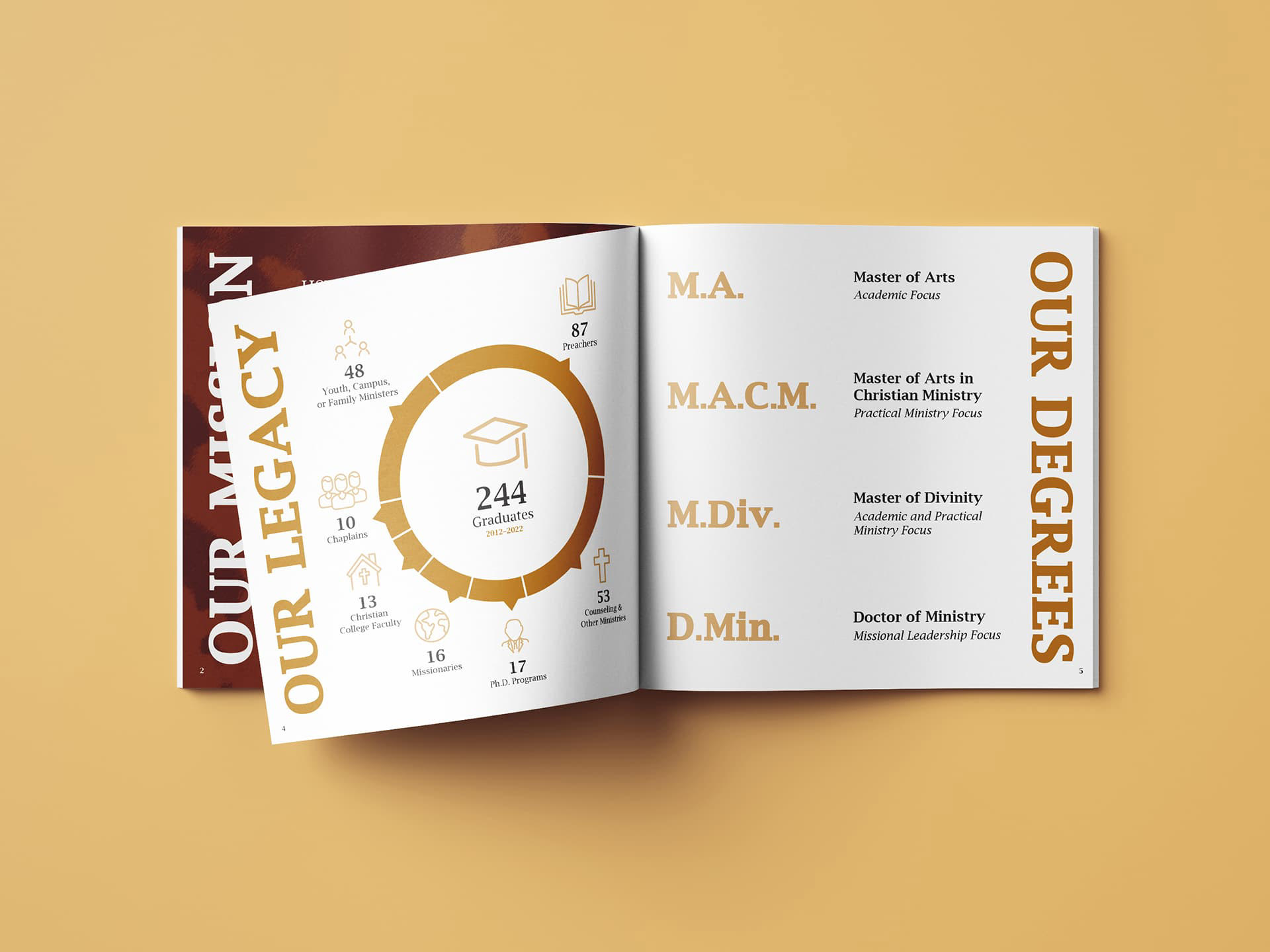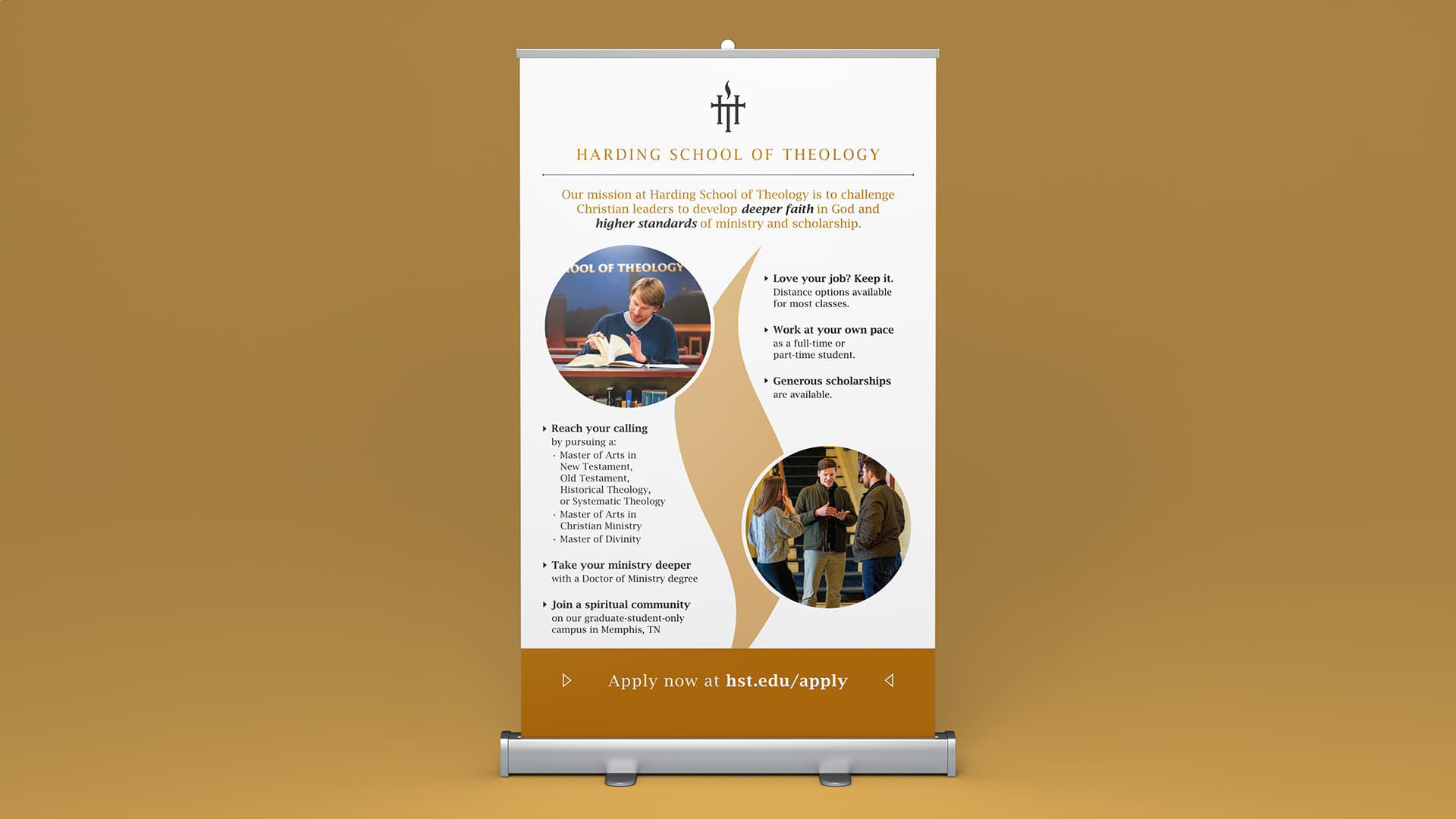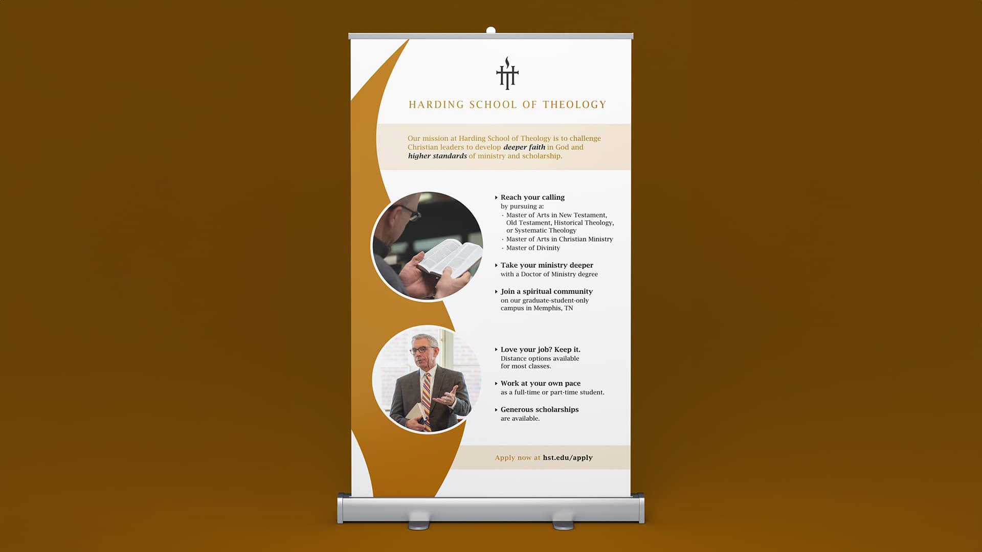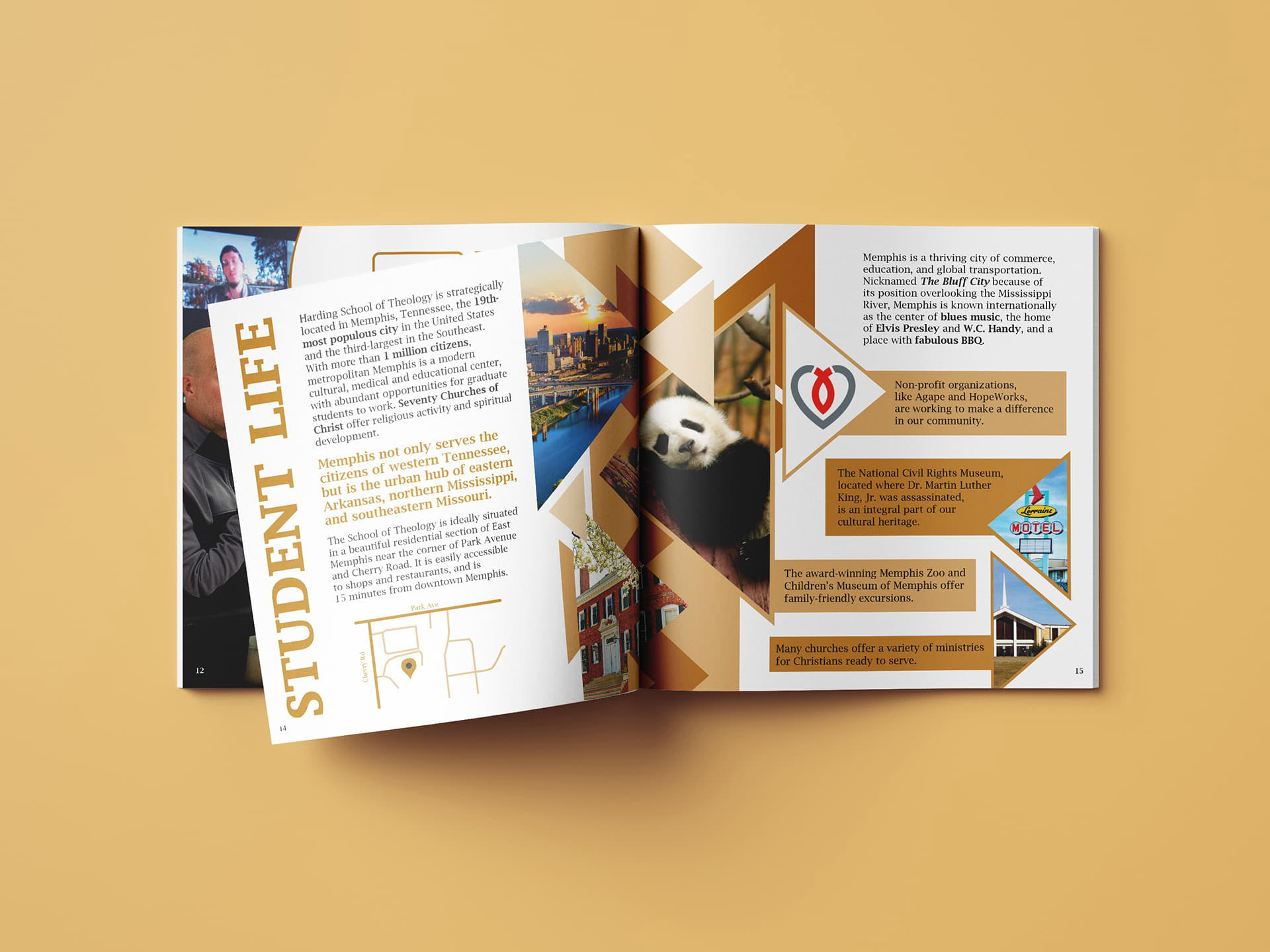 The Director of Admissions for the Harding School of Theology requested an update for several of the school's fundraising materials and campus signage because the school had recently endured a rebrand, but they never fully utilized it or even embraced it. Needless to say, we finished the job. The star of the lineup was the new admissions booklet, which became a hot-ticket item at every recruiting event.